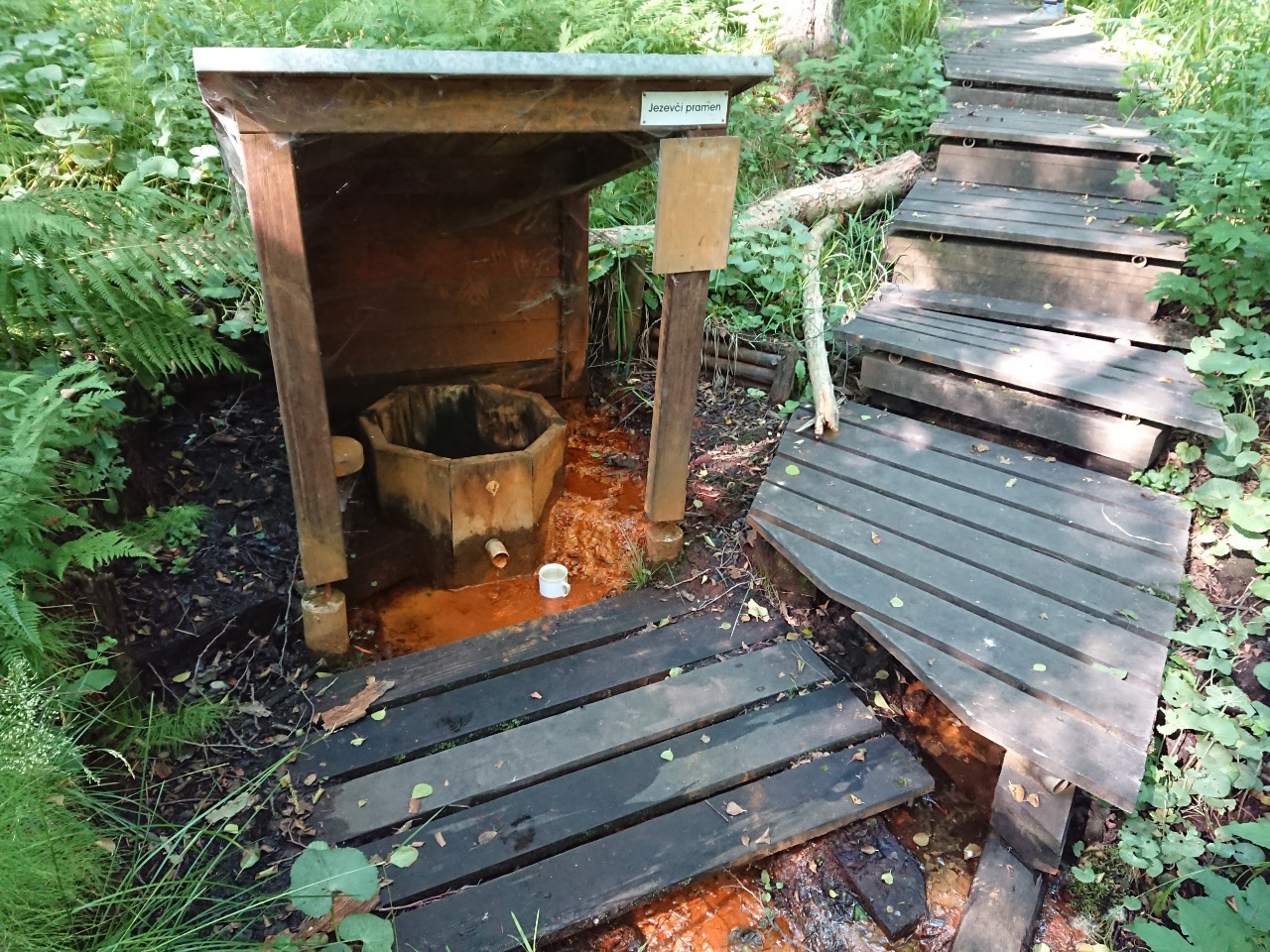 Jezevčí pramen je zachycen od roku 2007 v dřevěné jímce